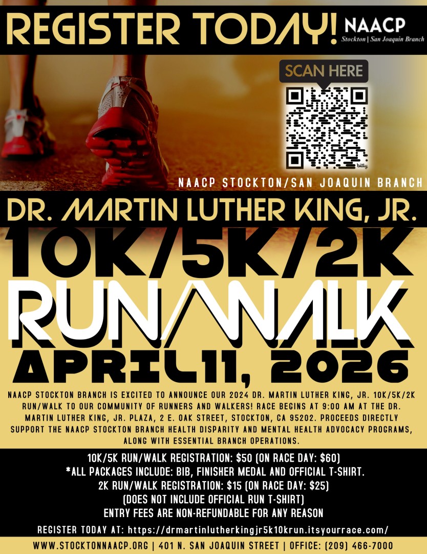 The NAACP Stockton Branch is thrilled to announce the return of our 2026 Dr. Martin Luther King, Jr. 10K/5K/2K Run/Walk — an inspiring community tradition for runners, walkers, families, and friends!
