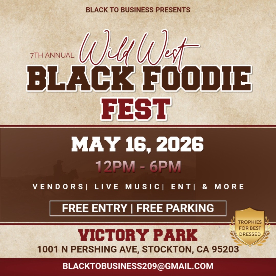 Dust off your boots, grab your hats, and meet us at Victory Park in Stockton for a rootin’ tootin’ celebration of Black owned food vendors, culture, music, and community!