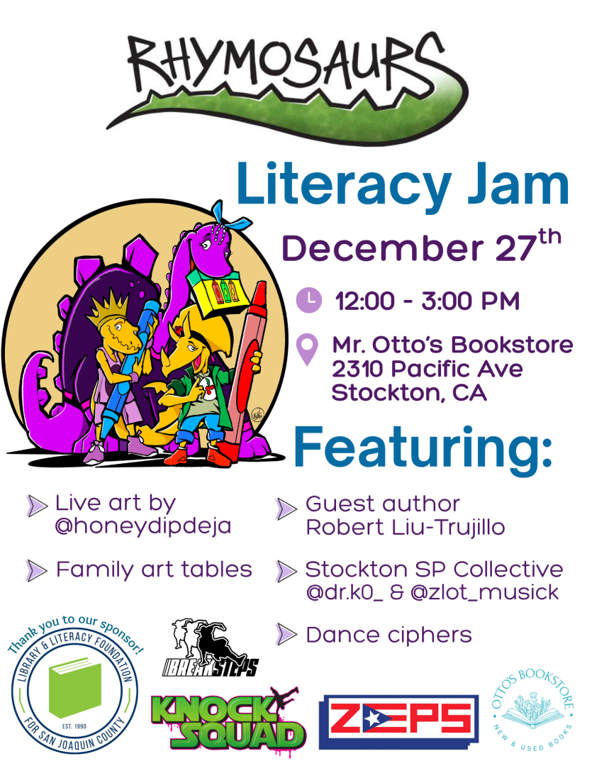 Hosted by Rhymosaurs with guest author/illustrator from Oakland Robert Trujillo.