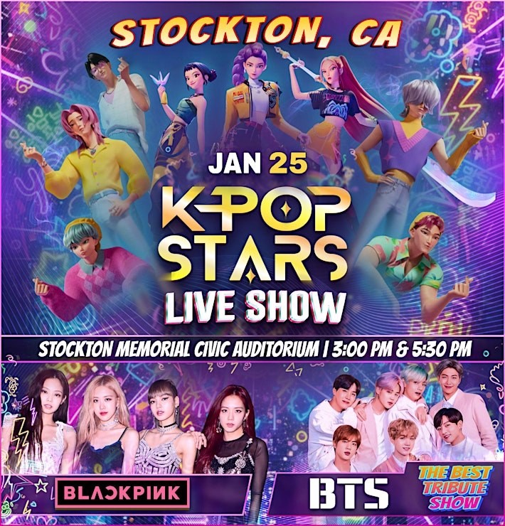 K-POP STARS LIVE SHOW is taking over the stage at the Stockton Civic Auditorium with high-energy tribute performances honoring some of the biggest names in K-Pop, including Huntrix, Saja Boys, BLACKPINK, and BTS. Experience the excitement of dynamic choreography, eye-catching costumes, and nonstop energy that brings the K-Pop phenomenon to life.