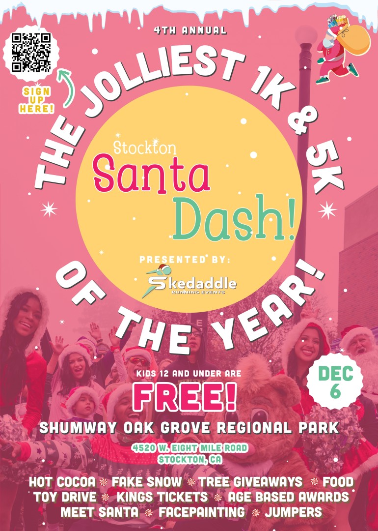 See a recap from last year's event in the video below! Participants get dressed up as St. Nick and run a holly-jolly course around the scenic campgrounds for giveaways, music, toy drive, and a good time! The first 50 participants will receive free tickets to the Stockton Kings game! Everyone will have the opportunity to win prizes or Christmas trees!