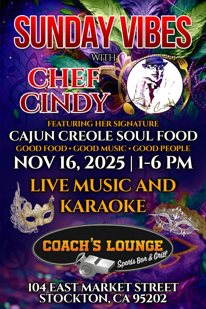 It’s an event for the community to enjoy Cajun Creole and Soul Food. To learn about the heritages of these foods and enjoy good company Karaoke and live entertainment. Check out this entertaining event at the Coach's Lounge in Stockton.