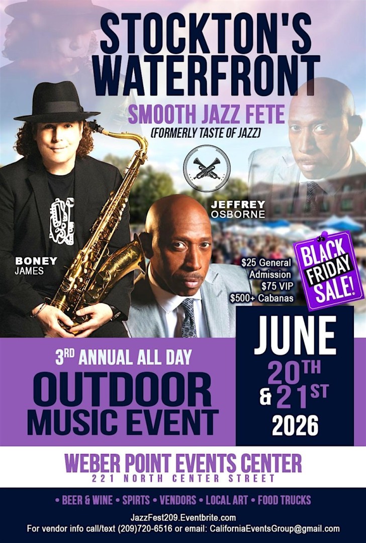 Make your way to downtown Stockton for the third Annual Stockton Taste of Jazz Fete ( Formerly Taste of Jazz ) on June 20th and 21st, at The Weber Point Events Center! Gather your friends for two full days of live entertainment! Sit back and relax while listening to the tunes of some of the best Jazz performers around.