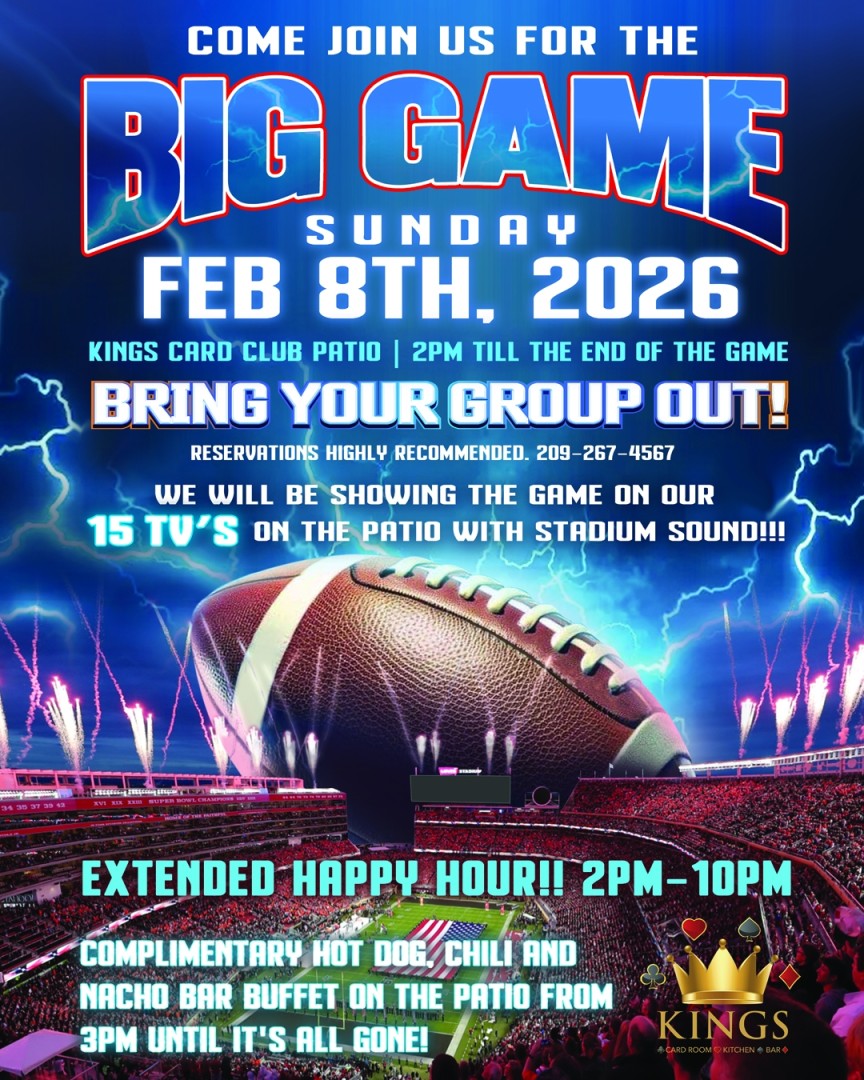 Get ready for the ultimate Super Bowl viewing party at Kings Card Club on Sunday, February 8th!