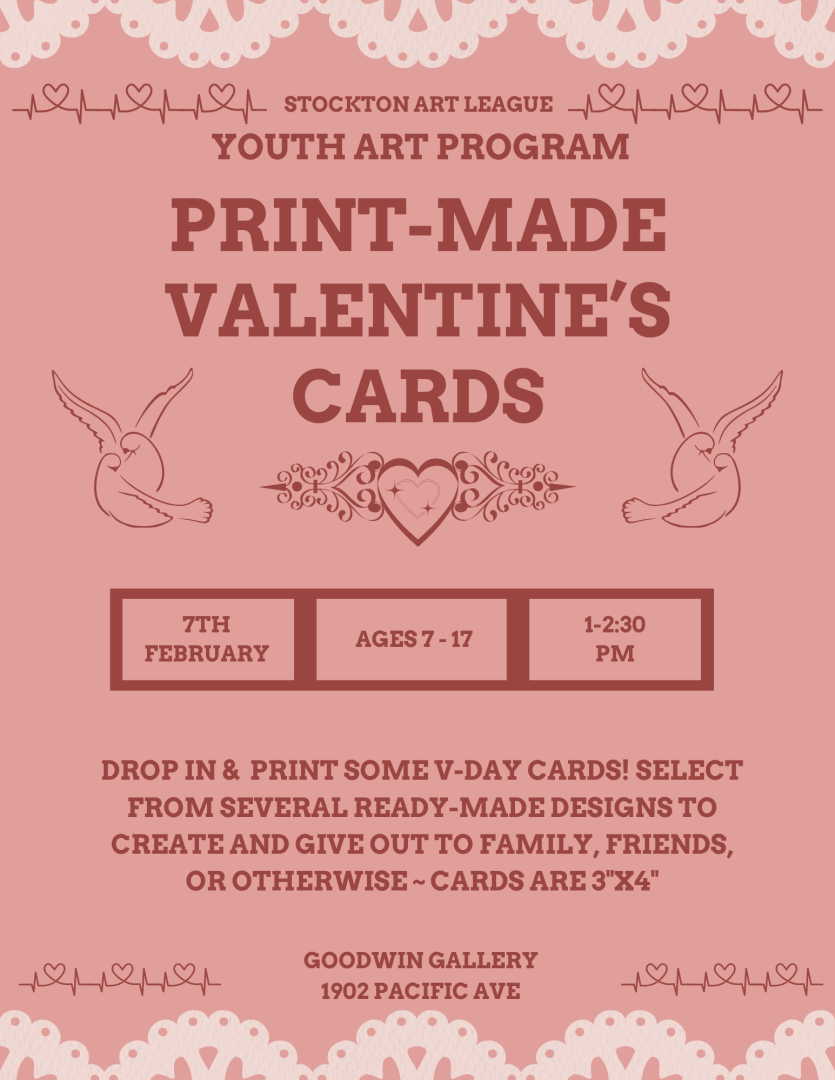Drop in & print some v-day cards! select from several ready-made designs to create and give out to family, friends, or otherwise ~ cards are 3"x4" . This is a drop-in event and will likely only take up to 15-30 minutes/participant to complete activity. Children will need to have adult supervision during this activity, please wear something you dont mind getting a little dirty.
